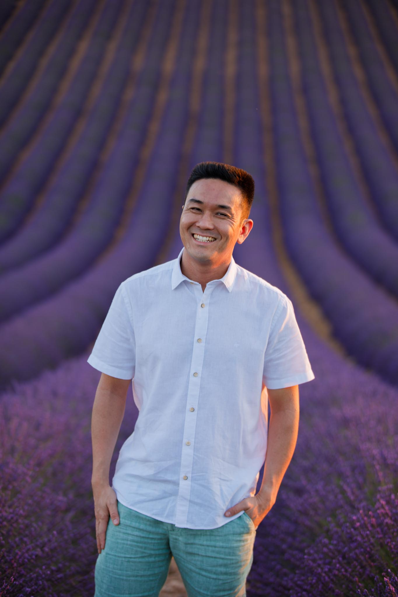 For this session, we chose the golden glow of sunset, shooting from 20:30 to 21:30. The timing allowed the lavender to catch the warm light, making the colours of the fields vibrant and soft at the same time.