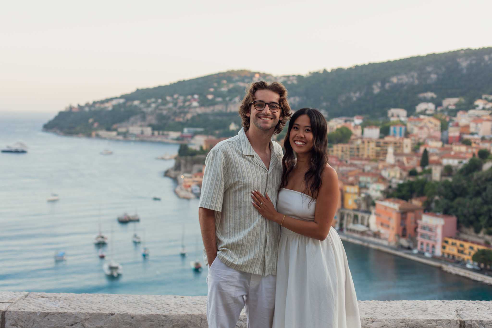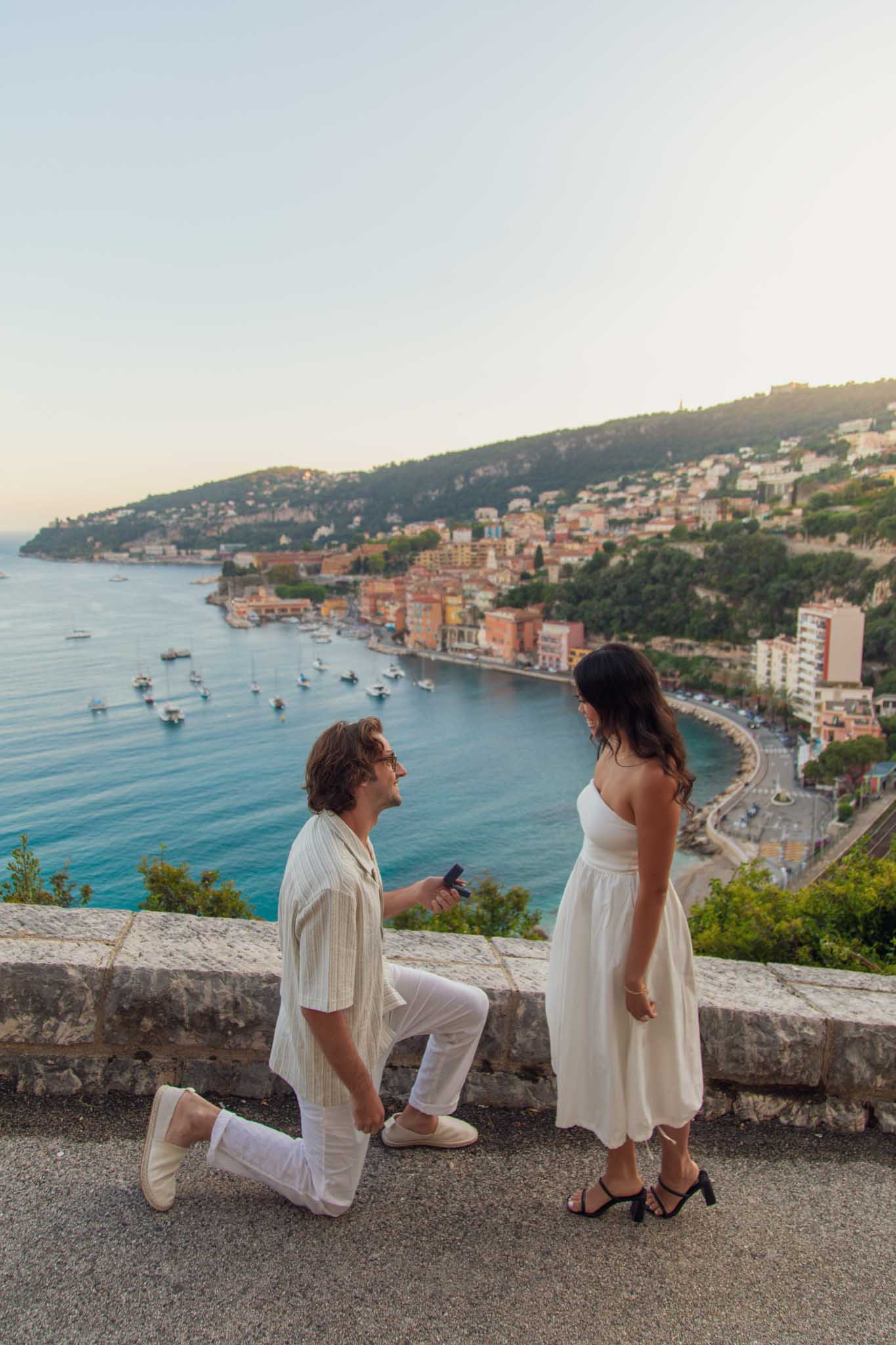 M reached out well in advance to plan a proposal that felt thoughtful and intentional. After talking through different options, we decided on a sunset proposal in Villefranche-sur-Mer.