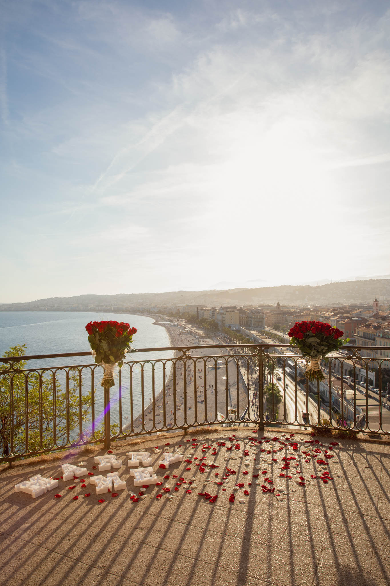 Sunset Proposal at Colline du Château with Decorations¶