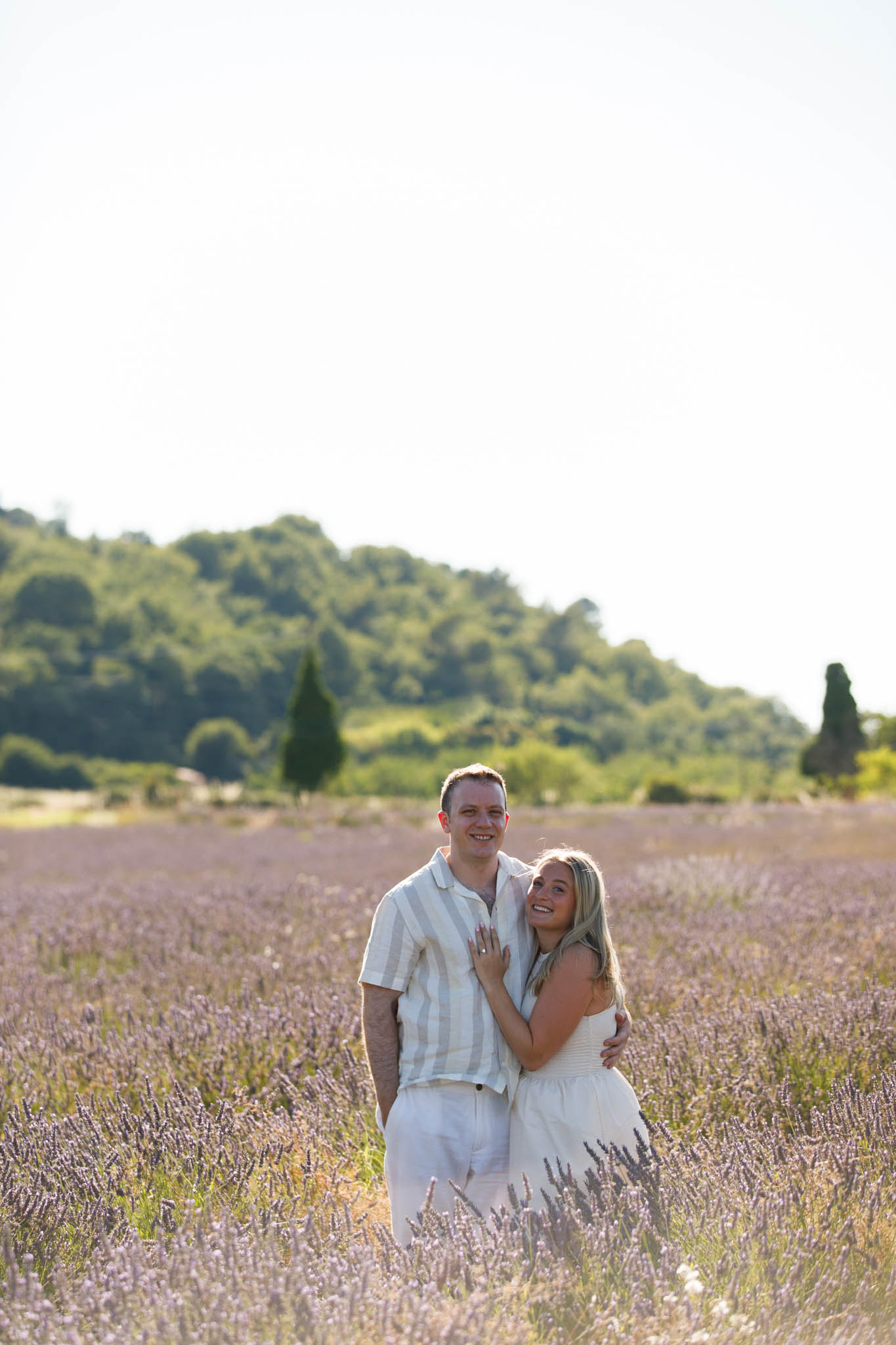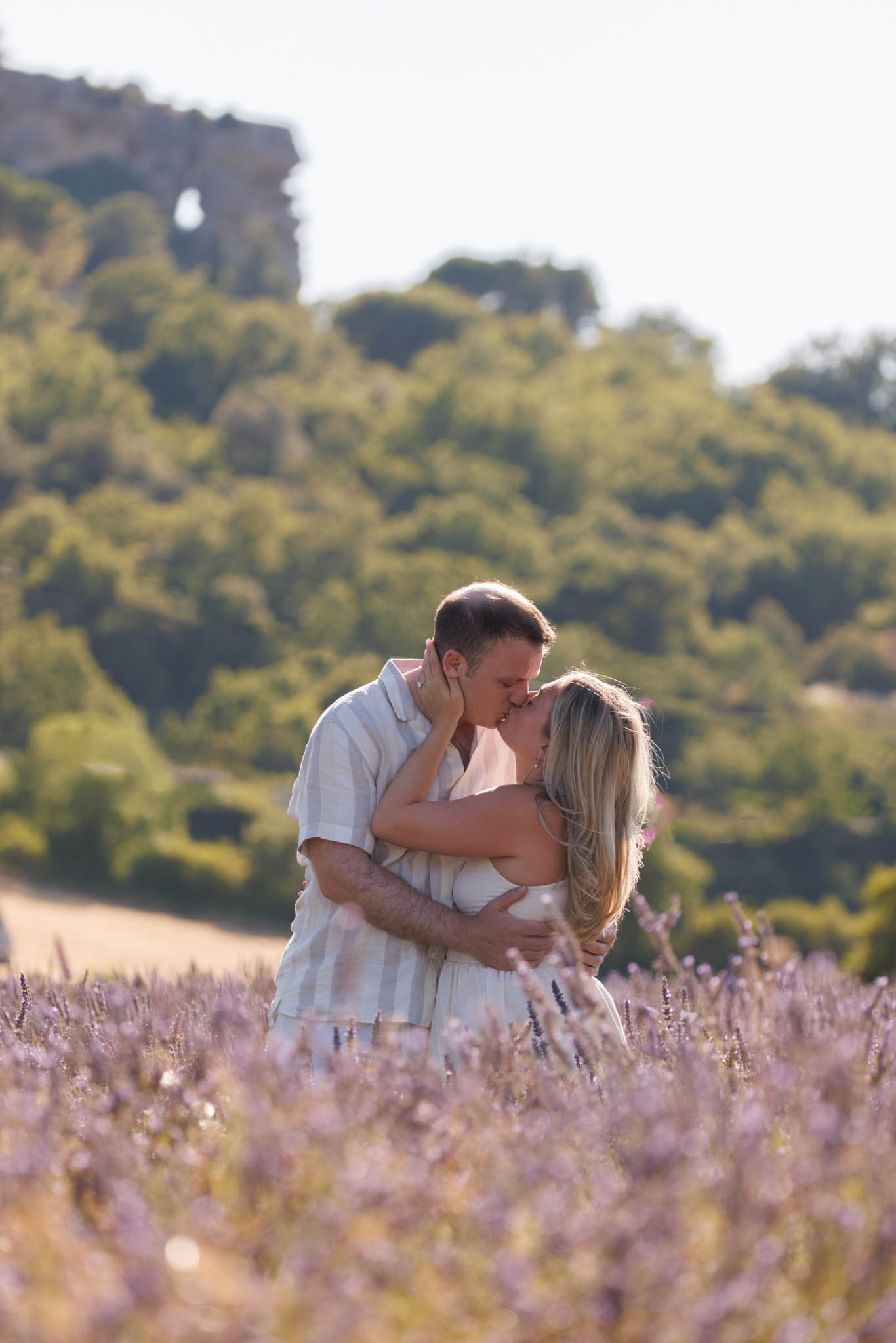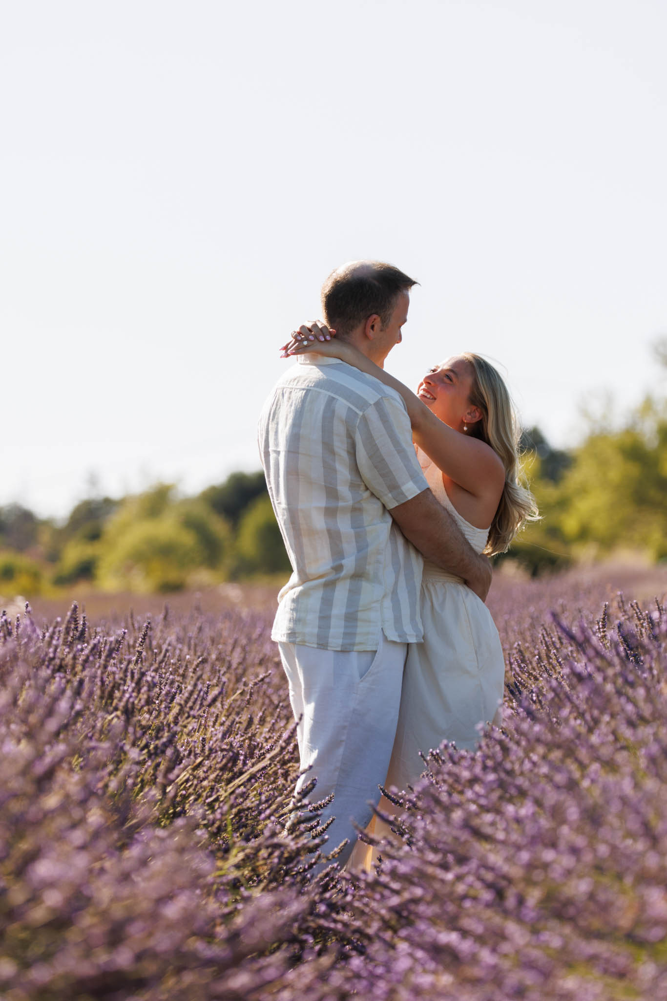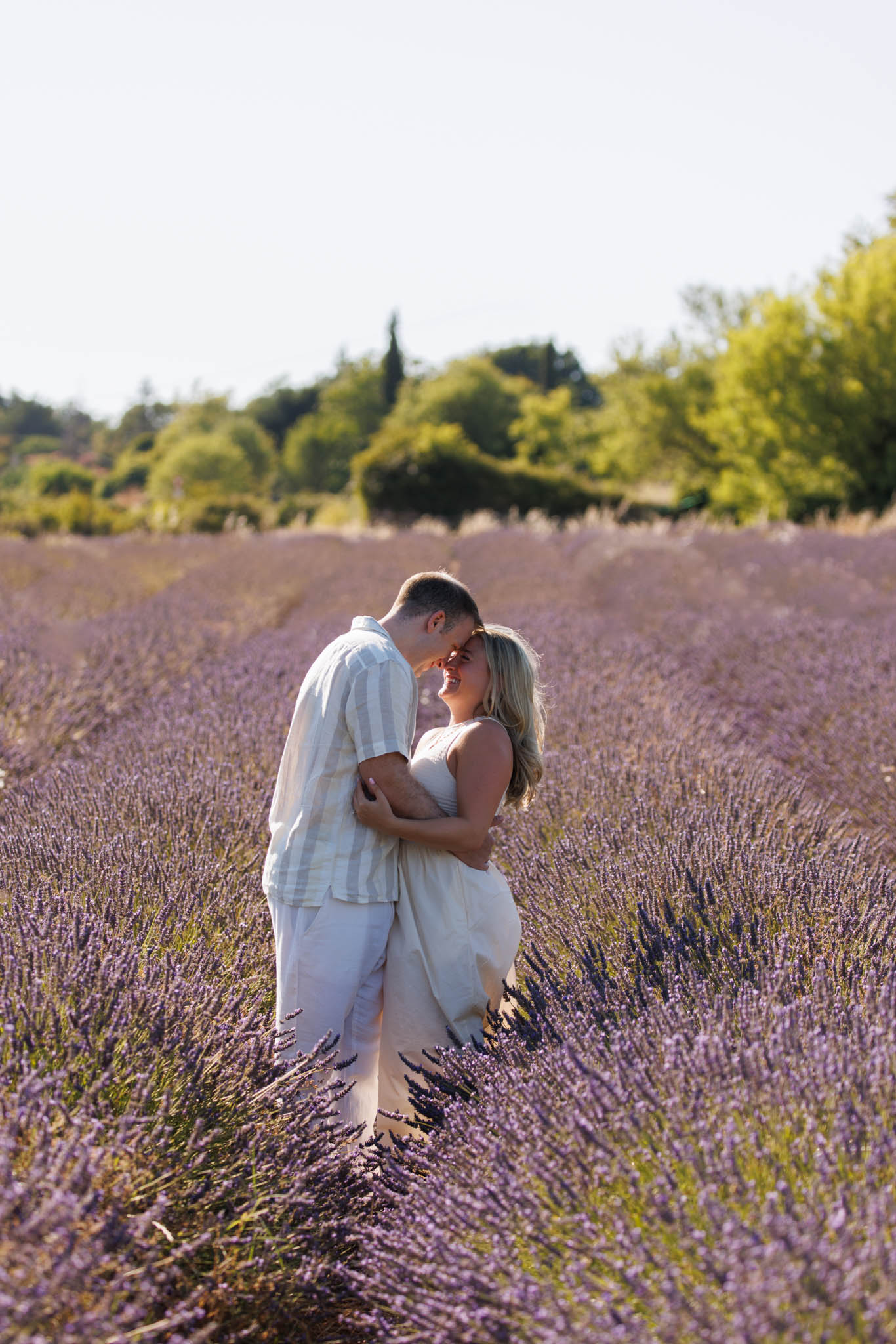 C reached out to organise a proposal for R in mid-July. Originally, the plan was to shoot in Valensole from 18:00 to 19:00, but due to an unusually hot summer, heat waves, and drought, the lavender fields there were nearly all harvested. We quickly adapted and found a beautiful field just outside Saignon in the Luberon region. It was quiet, private, and perfect for the surprise proposal.
