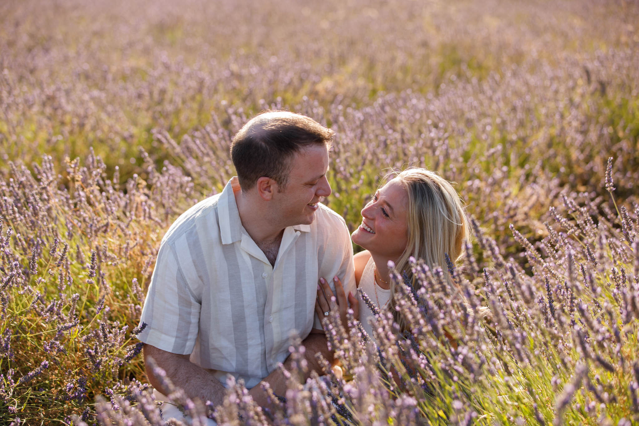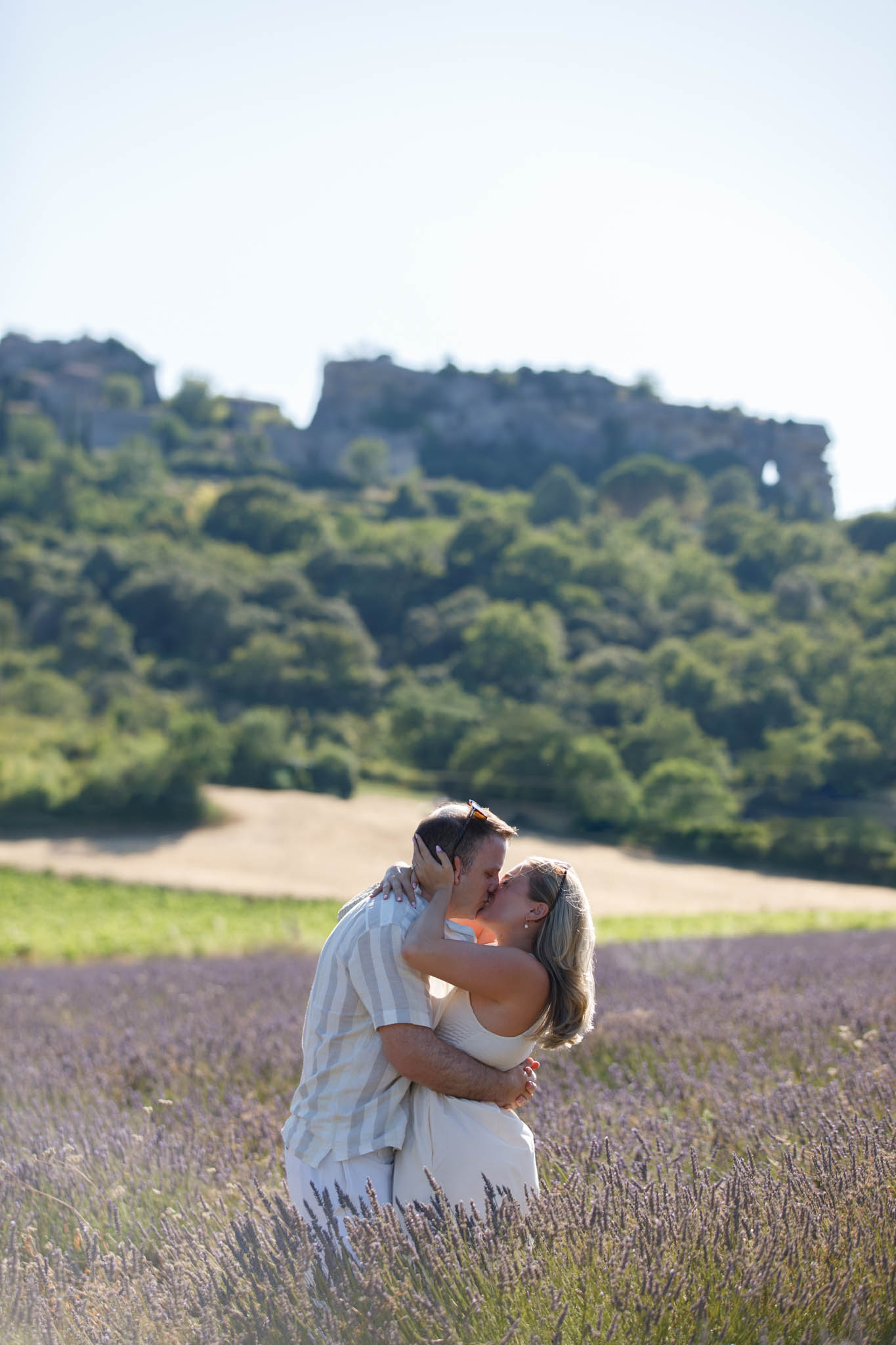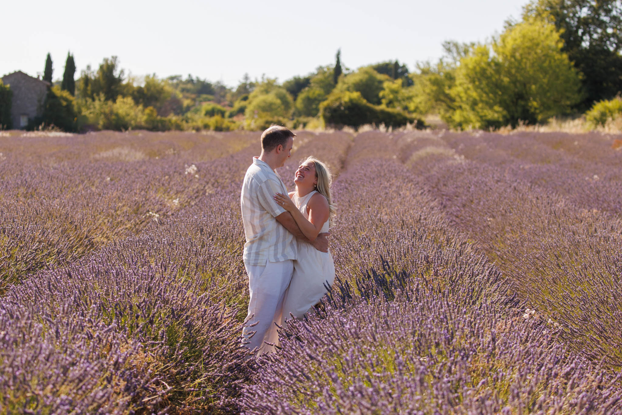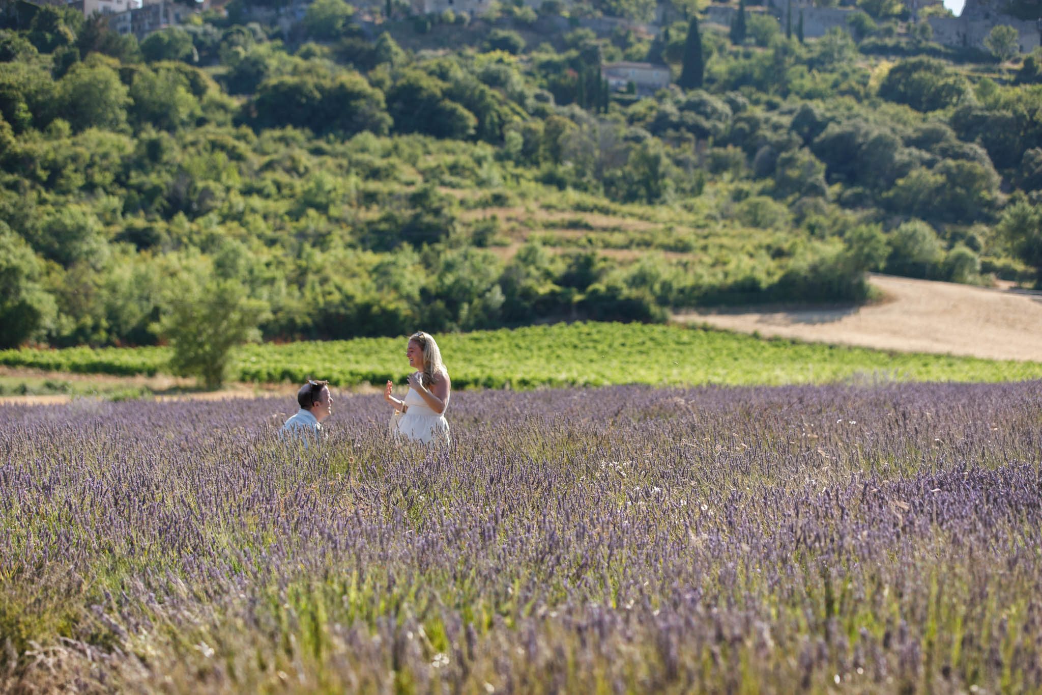 C reached out to organise a proposal for R in mid-July. Originally, the plan was to shoot in Valensole from 18:00 to 19:00, but due to an unusually hot summer, heat waves, and drought, the lavender fields there were nearly all harvested. We quickly adapted and found a beautiful field just outside Saignon in the Luberon region. It was quiet, private, and perfect for the surprise proposal.