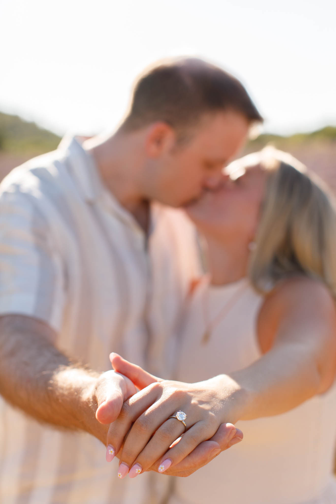 The proposal went beautifully. R was genuinely surprised and delighted, and we immediately started capturing photos of them together in the field. The soft summer light added warmth to the images, and the vineyard in the foreground gave the photos a unique framing.