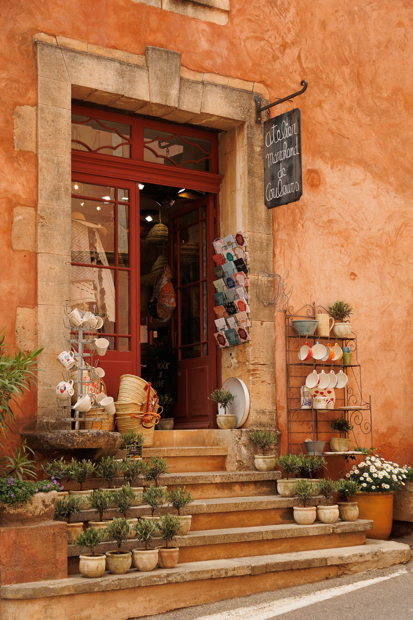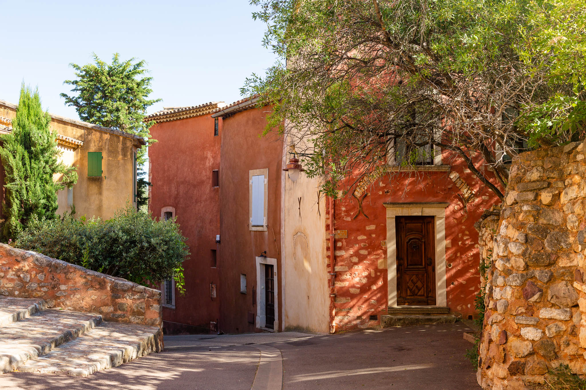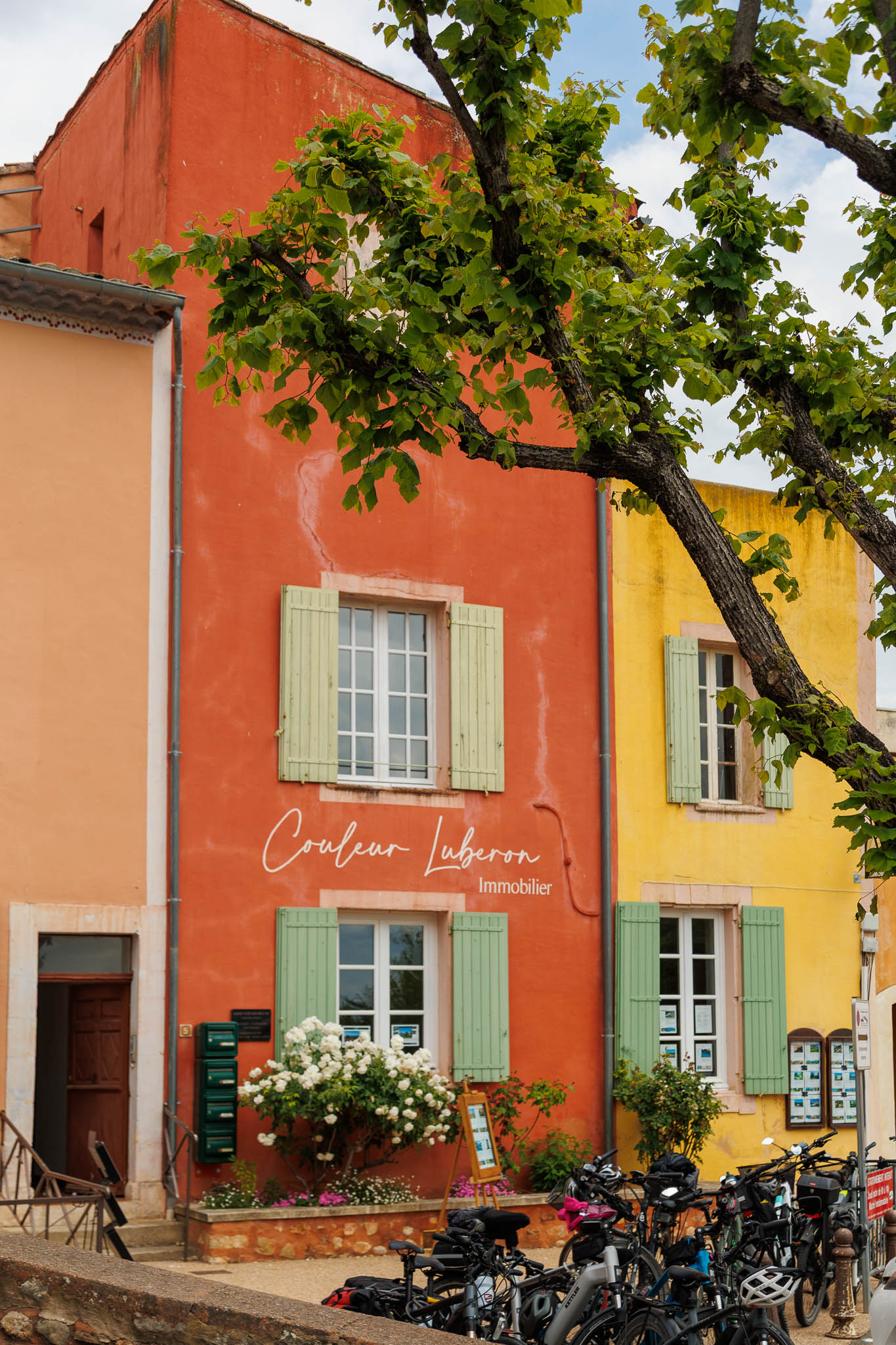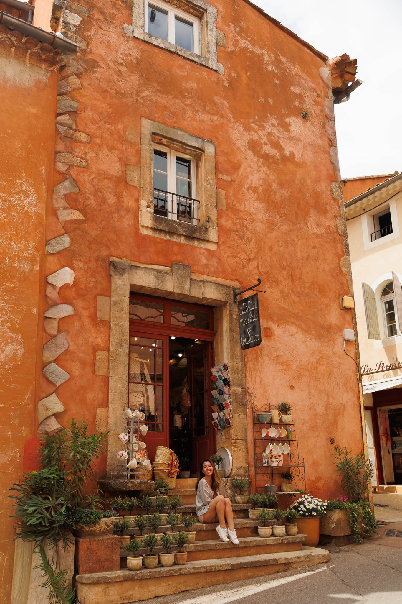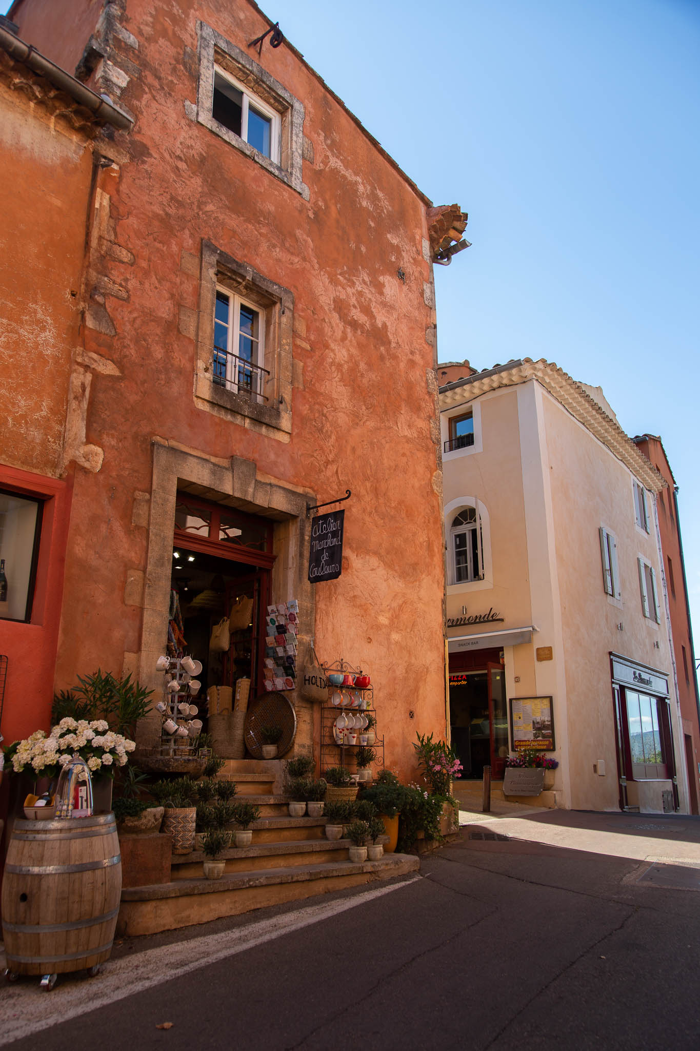 Unlike other stone villages in the region, Roussillon feels warm and vibrant. Its façades range from soft peach to deep burnt orange, a result of the natural ochre deposits in the surrounding cliffs. Even the shutters and doors seem chosen to complement the earthy palette. As you wan`der through the narrow lanes, every turn offers a new contrast of colour and texture.