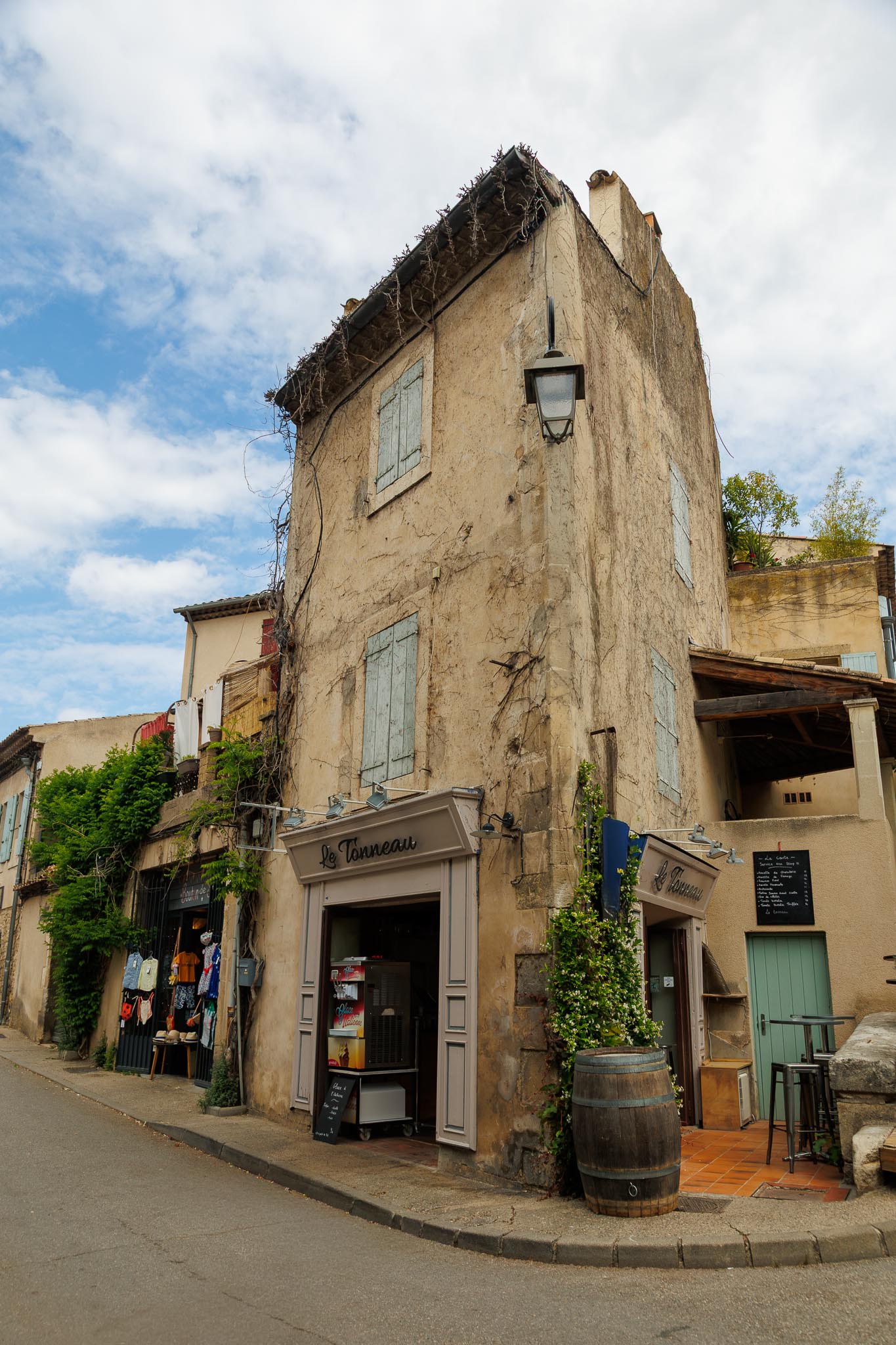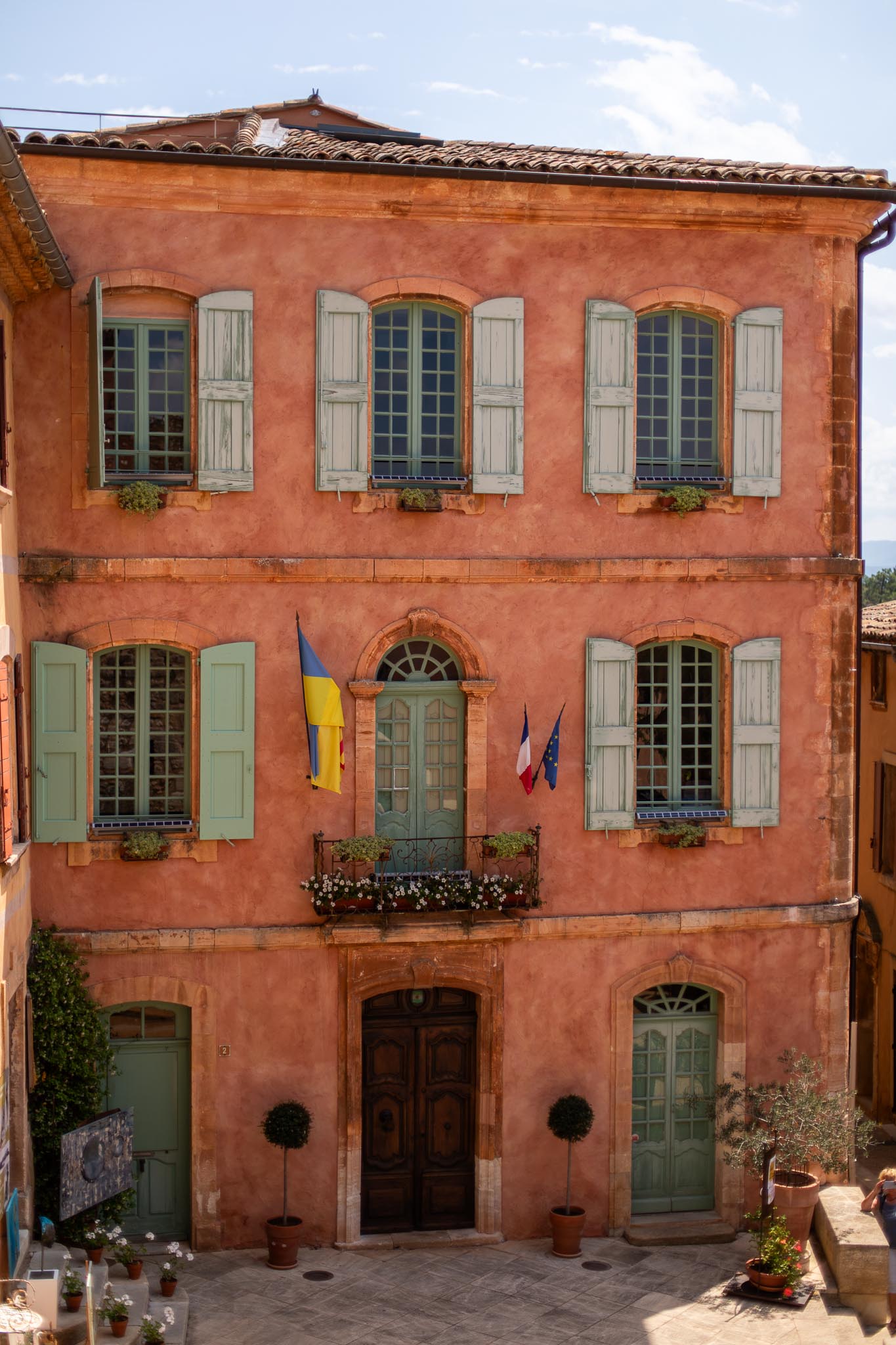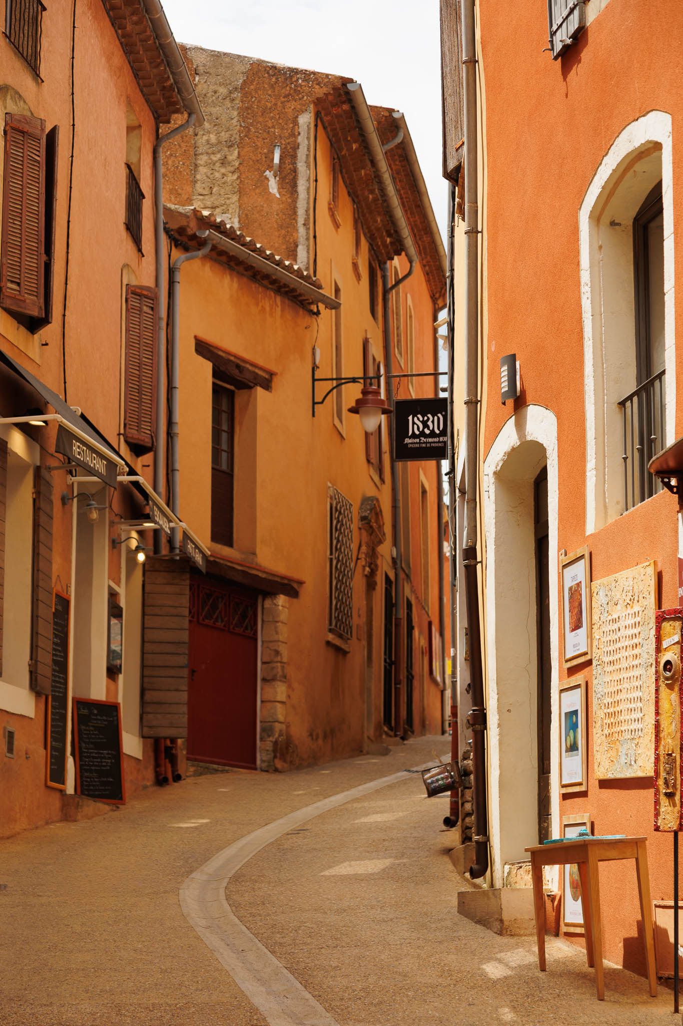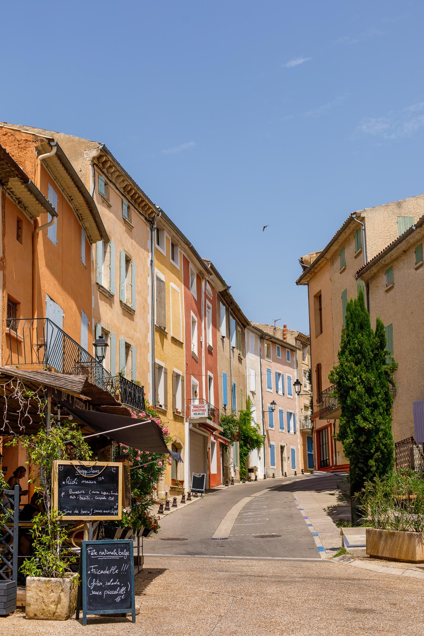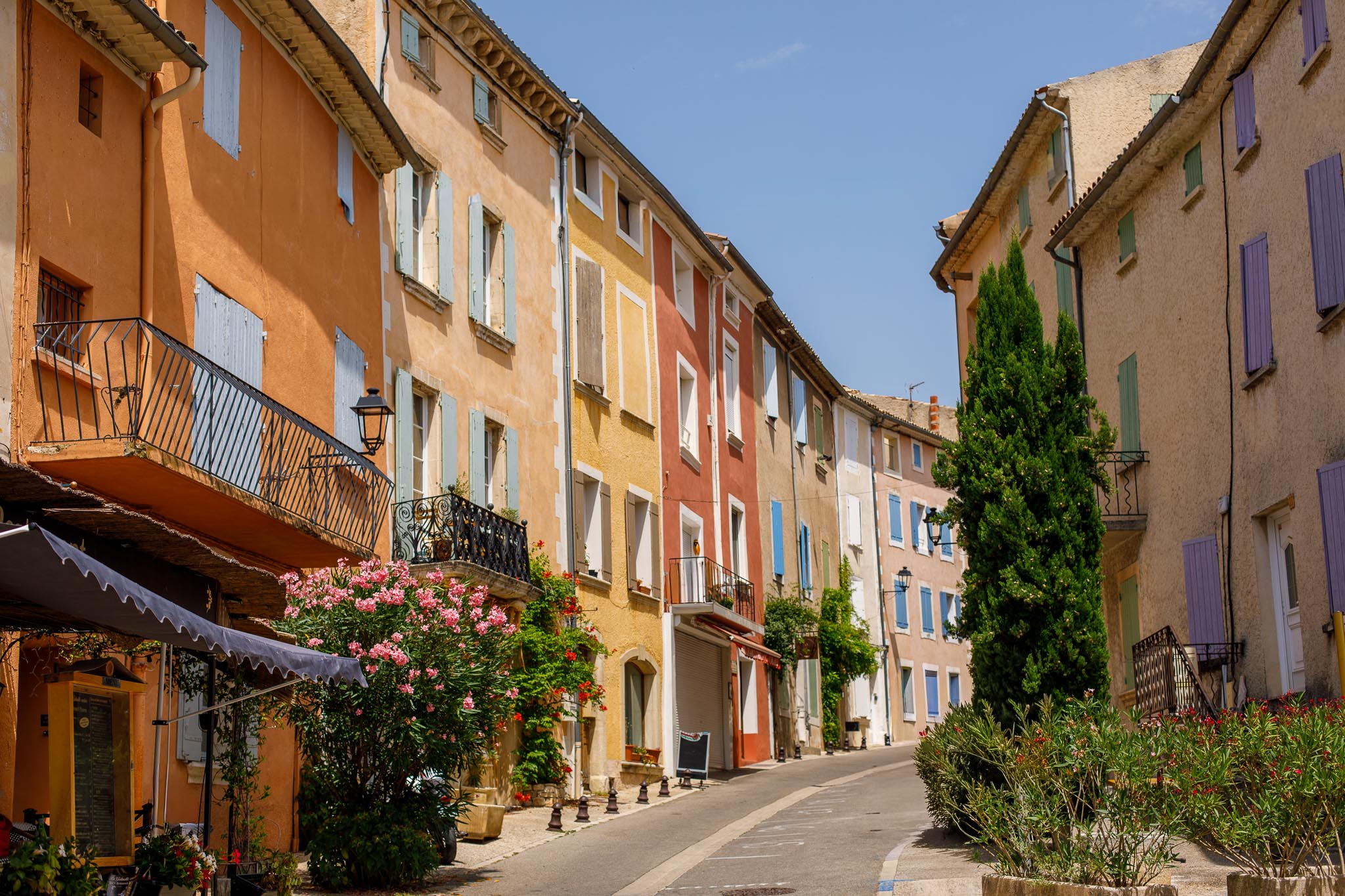 Unlike other stone villages in the region, Roussillon feels warm and vibrant. Its façades range from soft peach to deep burnt orange, a result of the natural ochre deposits in the surrounding cliffs. Even the shutters and doors seem chosen to complement the earthy palette. As you wan`der through the narrow lanes, every turn offers a new contrast of colour and texture.
