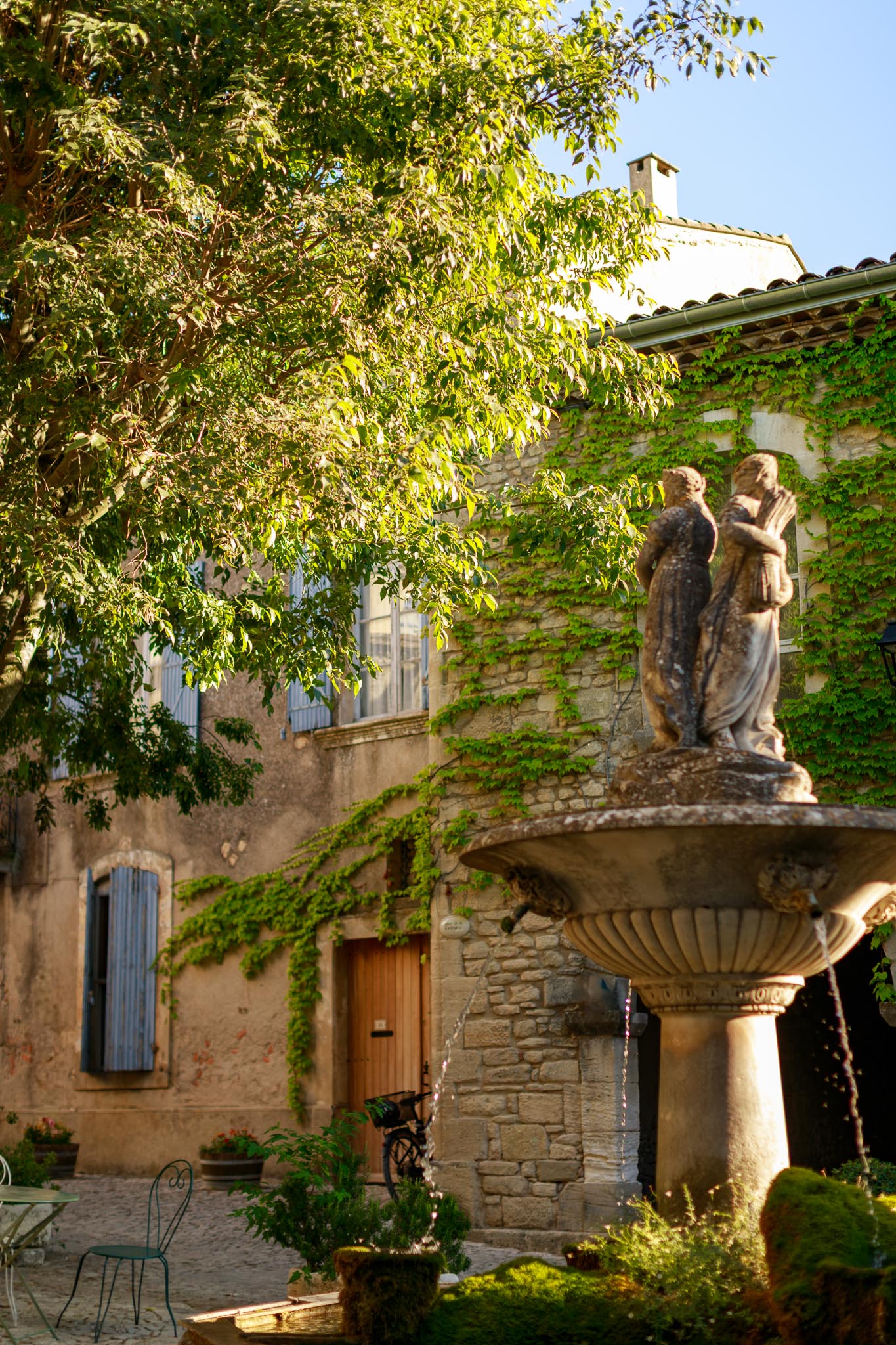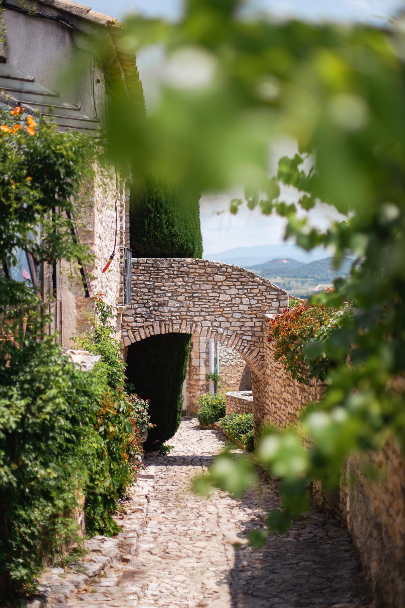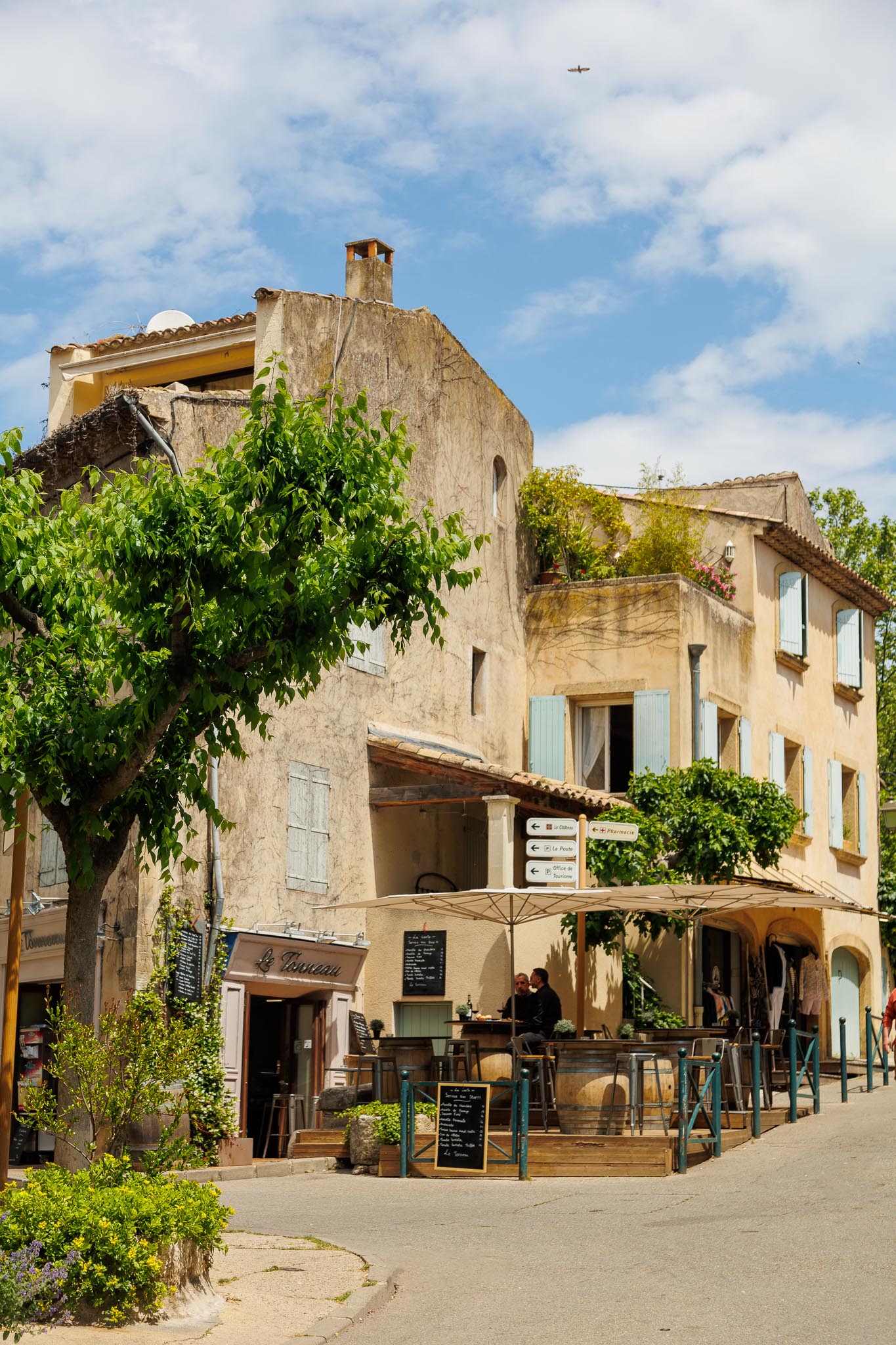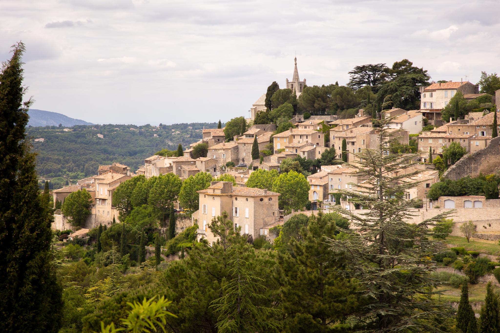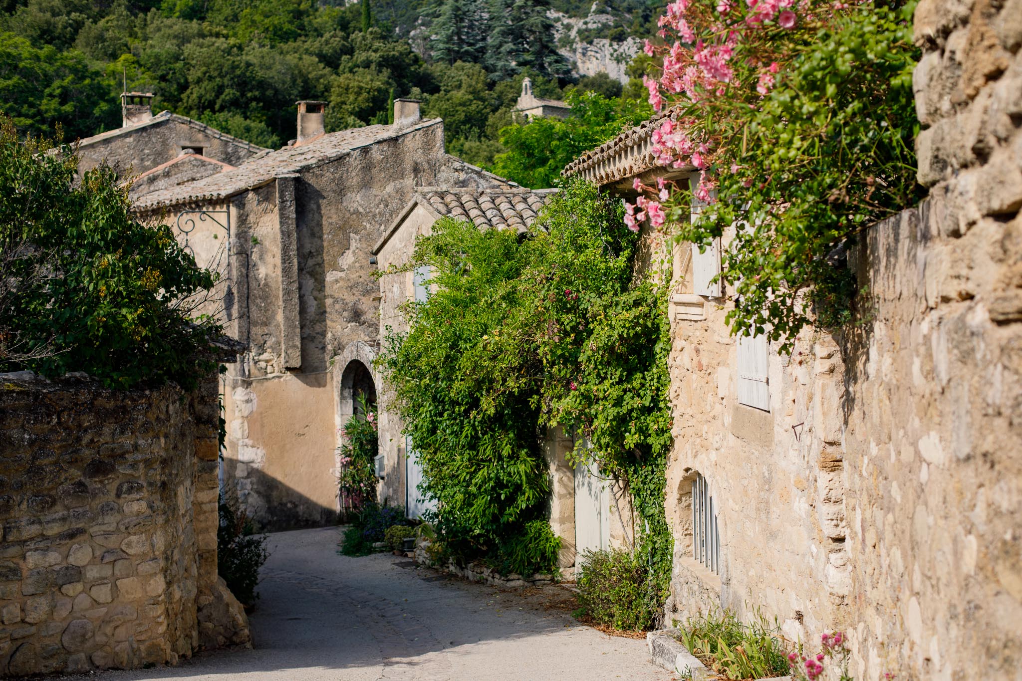 Joucas is a small village, built from pale local stone that blends into the surrounding hills. There are no crowds flowing through the streets, no rows of souvenir shops. Instead, you find quiet streets, carefully restored houses, and wide open views stretching across vineyards, olive groves, and cypress trees.